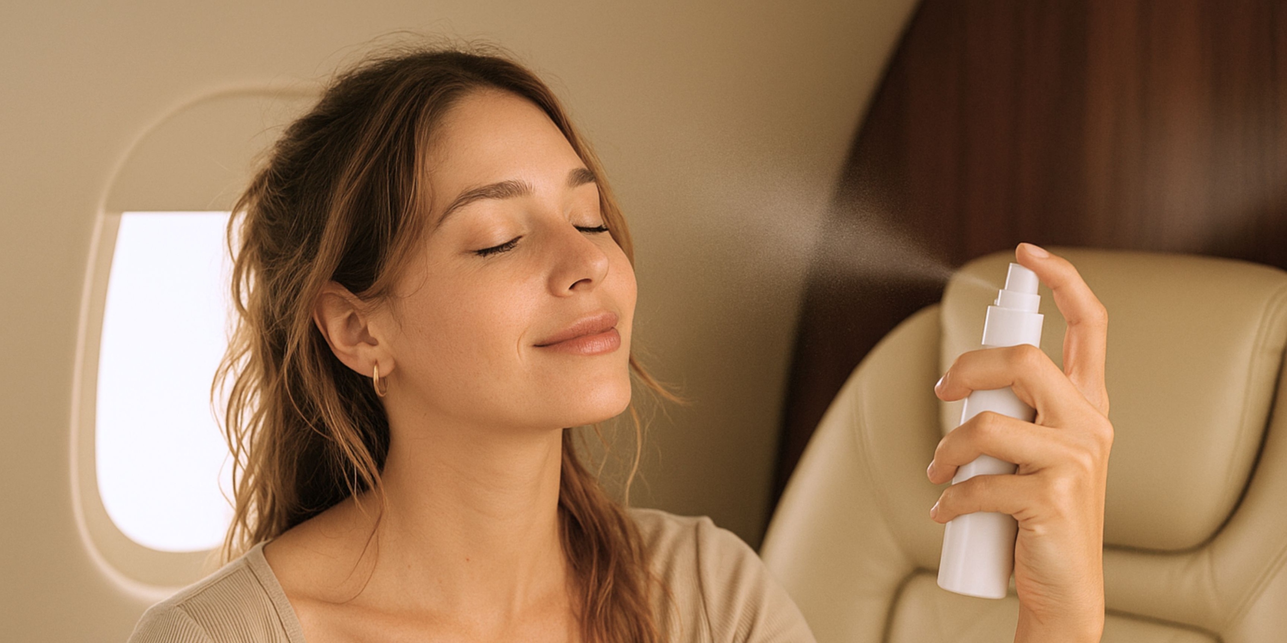 Airplane cabins typically sit at 10–20% humidity – far lower than the 40–70% humidity range your skin needs to maintain barrier integrity. In low humidity, the air “pulls” moisture from your skin, accelerating transepidermal water loss (TEWL).
